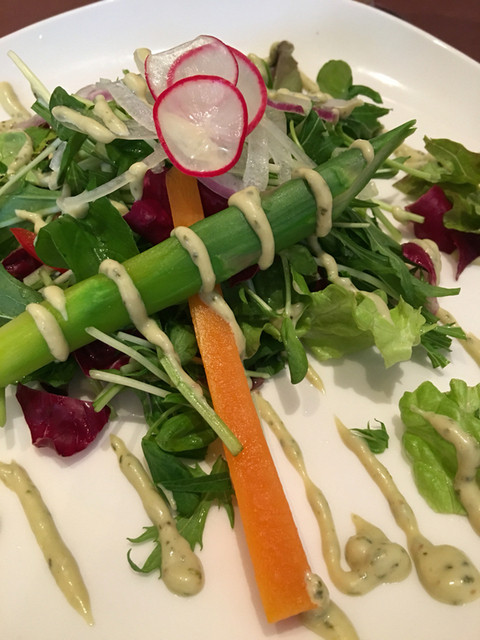 サラダ。アスパラガスが美味しいです。
