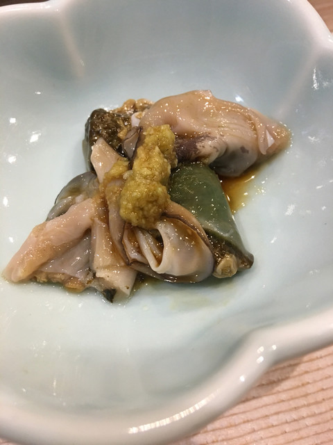 身はふっくらして塩分がちょうど良くてそのままいただくととても美味しいのですが、皮がパリッ炙ってあって美味しく、日本酒に良く合います。こちらもチビチビと最後まで綺麗にいただきました。