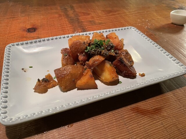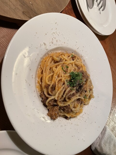 ずっと気になっていたこちらのお店。子連れでは難しいかなと思い、滅多にないチャンスで夫婦で。まず何より、店員さんの対応が良く、カウンターで気さくに話してくださった。その中で聞いたら、子連れokとのこと。週末のランチにお子様が来ることもある様子。入り口に低めテーブル席二つくらいとカウンター、奥にテーブル先かな。名物の豚のメインが美味しかった。ピザは生地から作ってたけど耳固めのやつでこれは好み分かれるかな。ポテトフライはあぶらぽかった・・・パスタは大人な味であっさりめ。意外とグラスワインの種類は少なかった。時間制約もありボトルは頼めなかったので、ボトルの種類はわからなかった。あのあたりで雰囲気良くまったりしっぽりのお店はないので重宝したい。