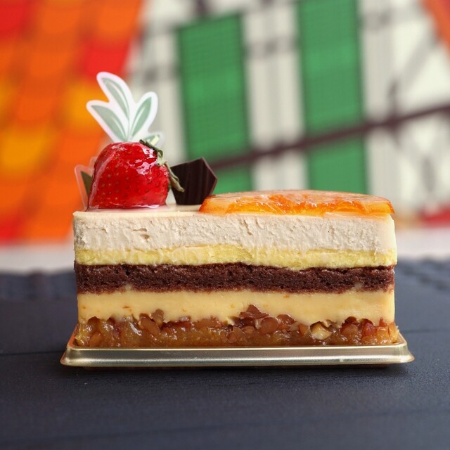下部のタルトにもりんご&キャラメルの甘苦さがあり、アップルパイを思わせる仕上がり。