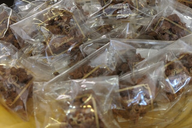 外周にナッツを埋め込んだバリッとチョコで、中は全面しっとりチョコ。