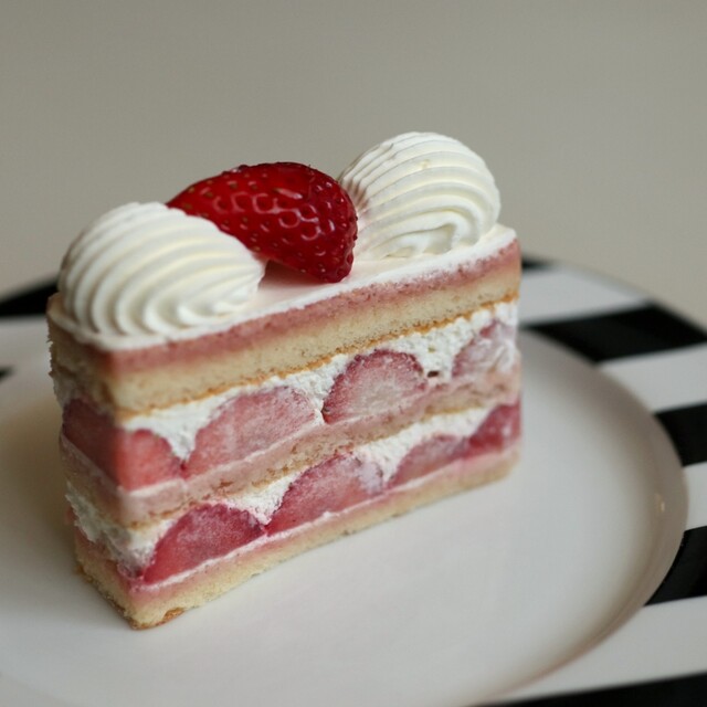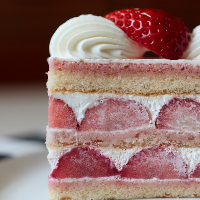 まろやかで滑らかな純白の生クリーム。トップと層にたっぷりのイチゴ。