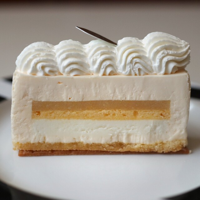 レモンのジュレを合わせたレアチーズケーキ。