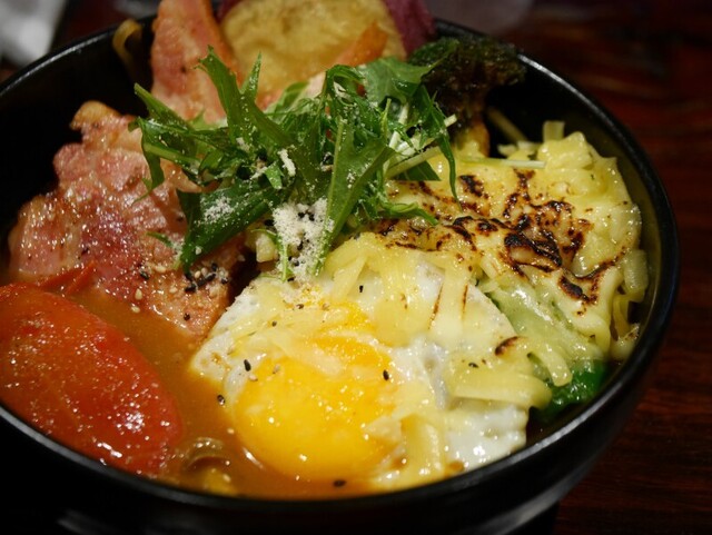 エビスープのベーコン&半熟目玉焼き、トマトと炙りチーズ!