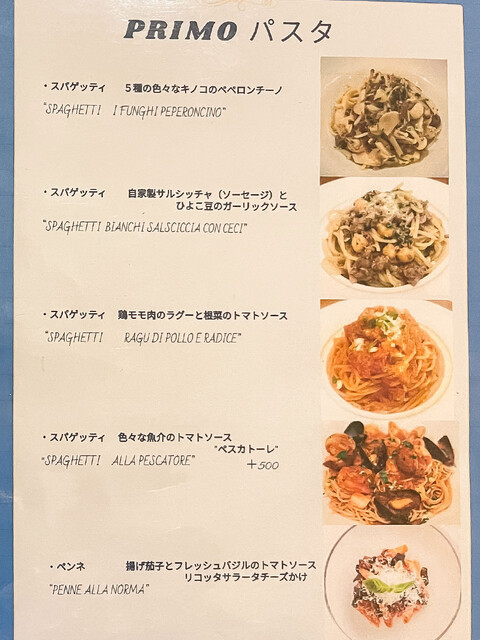 本日のおすすめパスタ・メイン料理は黒板に書いてました。