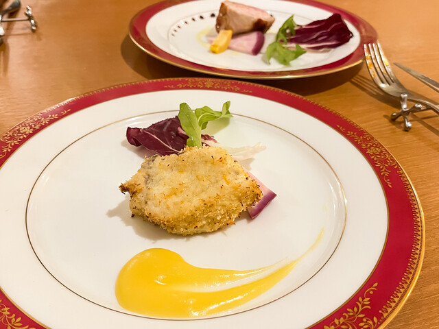 卵のフリッタータは、真鯛入りでエビっぽいコクのあるソースが美味しい。