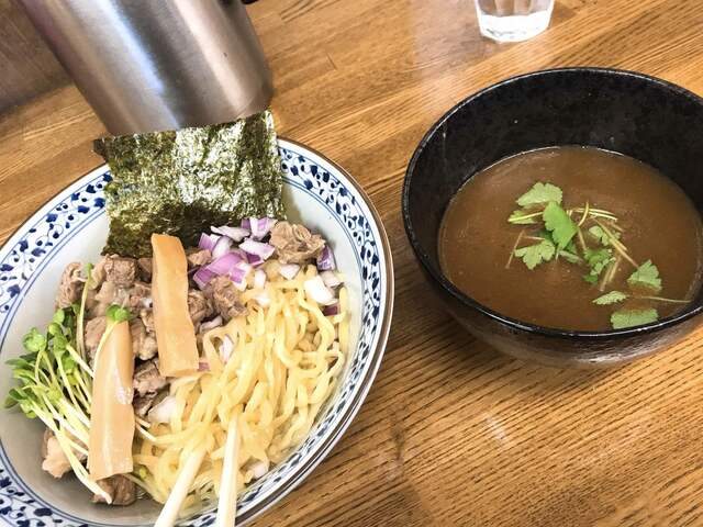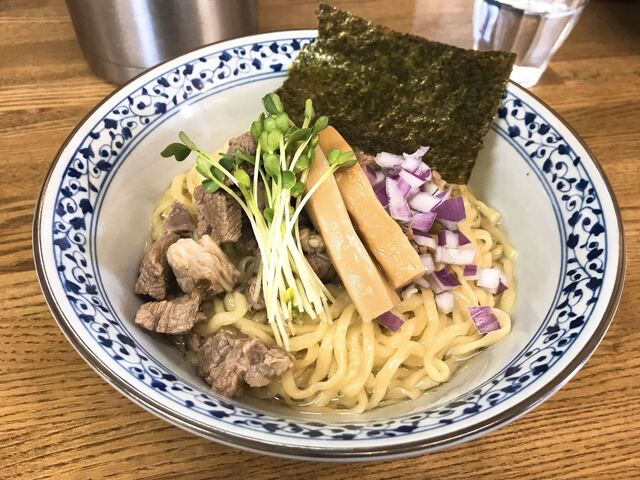 和牛モツ醤油つけ麺〜手揉み平打ち麺〜【限定】