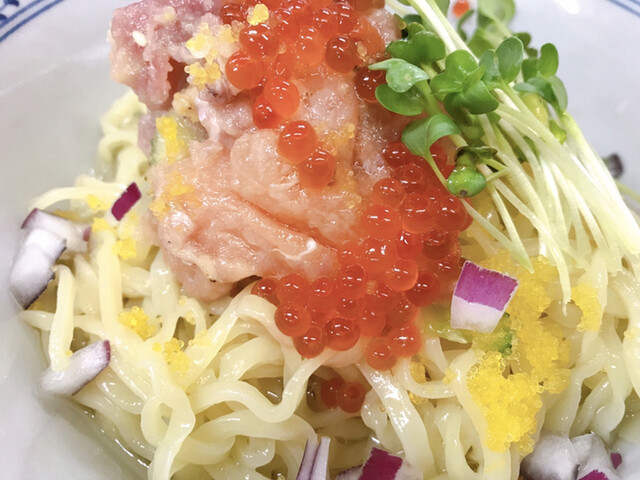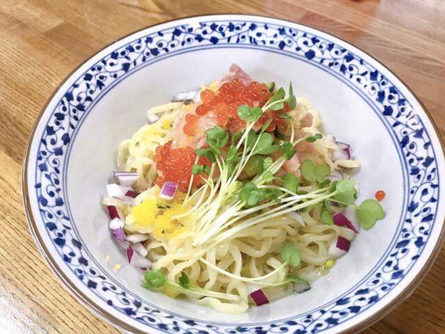3号店 イチバノナカ ”サーモンとイクラの山葵和えそば”や限定の和え麺のベースになっている㐂九家 本店の人気メニューです。