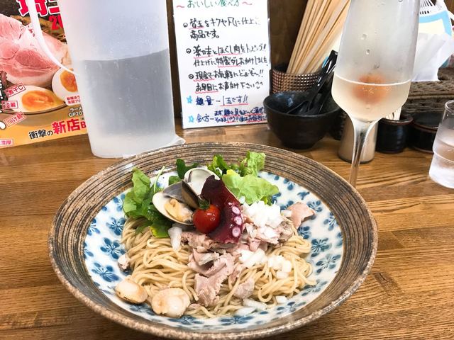 冷たい海鮮まぜそば〜トマトサイダー付き990円