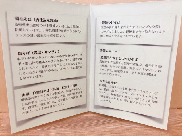 スープは煮干出汁・鶏出汁・4種類の厚削り・干し椎茸・あさり