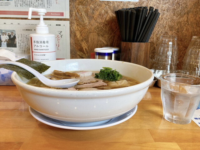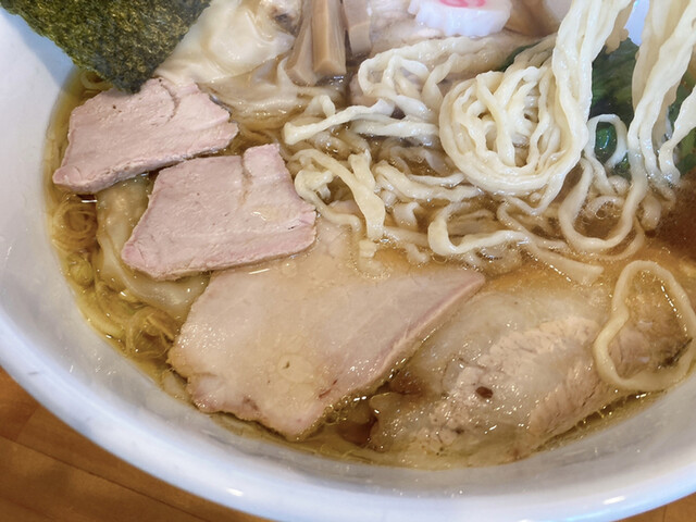 スープは油の浮いた動物系の清湯スープが主体、豚鶏らしいけど特に豚が強い様に感じ、スッキリとして、うめ~なぁ~ww