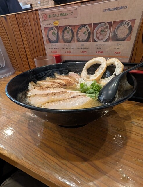 トッピングの車麩はスープに浸してやわらかくしてからいただくのが好きです。初めて見たときは要るのかなぁって思いましたが、今では和海さんにはマストアイテムだと思っています。とってもお気に入りです。