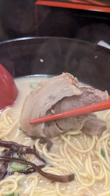 麺はこれも山笠ラーメンで虜になった細い細いストレート麺。軽めでいくらでも食べたくなりますが、中華のコースを食べた帰り道だったので替玉は我慢しました。
