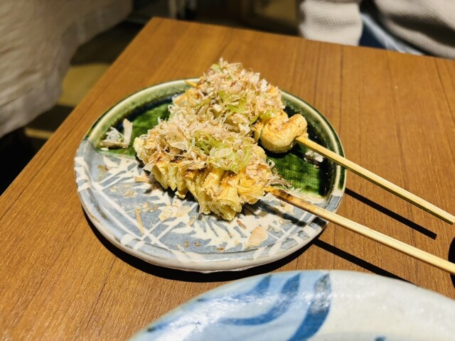 初めて食べたお揚げさんの串はカリカリサクサクで美味しかった!レバ刺しもトロトロで最高でしたよ。