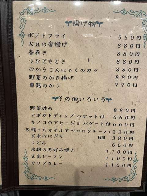 料理は全てヴィーガン、オーガニックワインやビールも有ります。