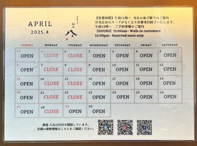 4月の営業日