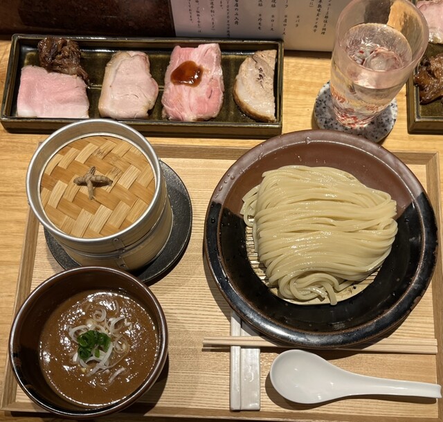 予めネット予約時に頼んでおいた、つけめん【TOKYO-X豚骨魚介】中250g(2,000円)と特製全部乗せ【焼売バージョン】(1,300円)。