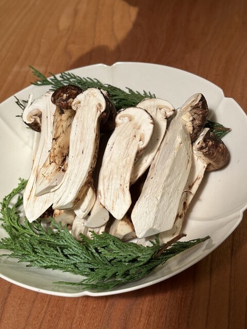 ◇長野県の松茸の炭火焼きは柚子と琴引浜の塩で食感もお味も最高です。