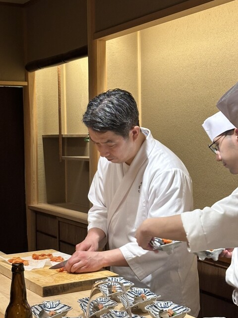京都市烏丸鞍馬口にある上御霊神社の近くにお店があります。2023年12月に開店されました。京町家でカウンター8席に個室があります。18時一斉スタートです。大将は京都の老舗店である高台寺、室町和久傳の総料理長をされてました。炭火で丹念に焼いての魚介やお野菜は別格ですしお出汁が本当に美味しいです。既に予約困難店になっておりますがお薦めのお店です。以下は今回12月のメニューです。