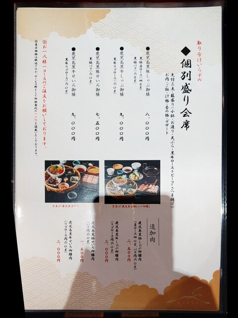 食べ物はメニューから「鹿児島黒牛のすき焼き肉」を注文します。