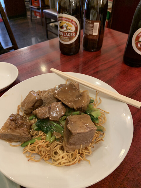 焼きそばですと、表面をカリッとさせたタイプのそばで、とろりとした牛バラ餡かけと、とてもよく合います。ビールが進みますな。✨