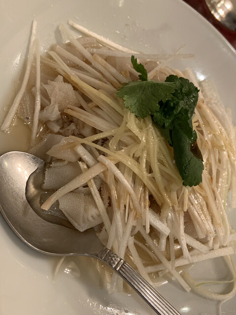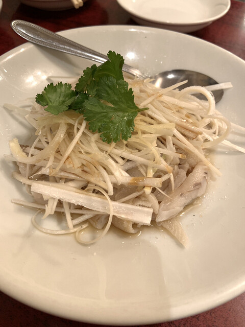 シンプルに塩味が効いた味だけど、香味油と相まって絶品❗️プリプリくにゅくにゅしたセンマイの食感も楽しいし、白髪ネギとハリガネ生姜がいいマリアージュを生み出してるぅ!美味。