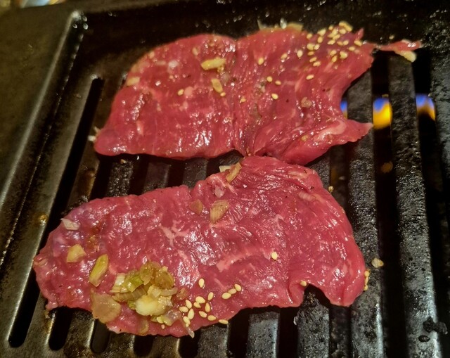 御茶ノ水にある「晴真栄」で焼肉ディナー。ラガーマン御用達と噂の人気店だけあって、肉の質は圧倒的。厚切りのタンは歯ごたえと旨みが見事で、サシの入った和牛は口の中でとろける贅沢さ。さらにホルモンやハラミまで抜群の鮮度で、どれを選んでも間違いなし。シンプルに炭火で焼き上げるスタイルが肉の旨みを最大限に引き出していました。肉好きなら一度は訪れる価値のある名店です。