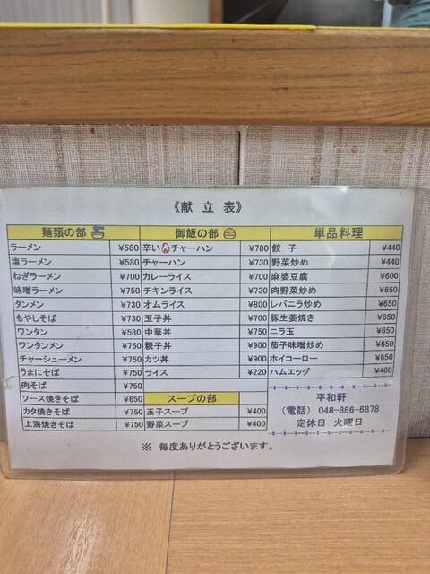 浦和で大好きな町中華といえば、やっぱり平和軒さん。
