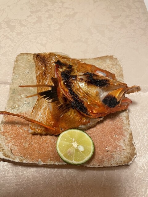 まず、白和えとカラスミ。カラスミを食べてから写真撮りました…次に蒸し鮑。優しいお味です。鮑は柔らかい。次はクエの炙り。これも美味しい。