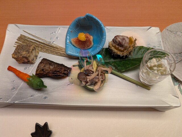 食前酒、前菜は色々と7重。小鉢は松茸!