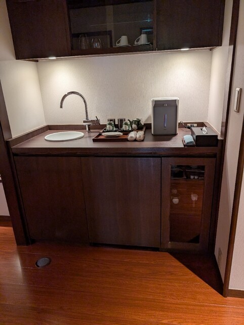 チェックインの手続きをする間にお菓子と抹茶をいただきました。