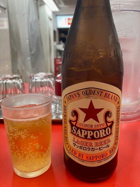 早速、ラーメン920円、チャーシューマイ3個240円、中瓶ビール700円の鉄板の組み合わせ