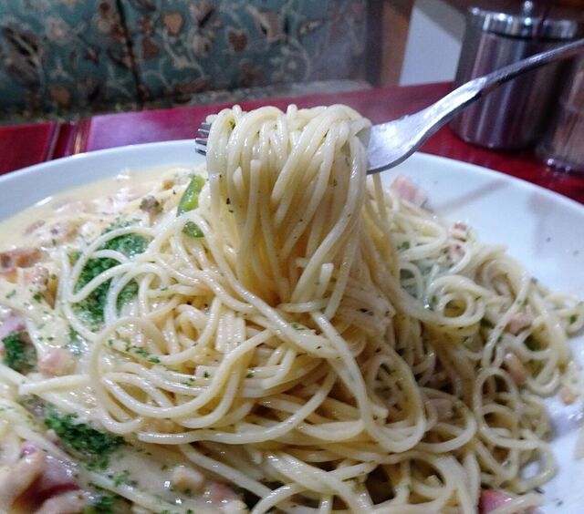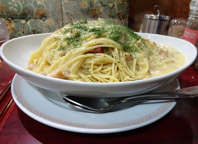 ■小伝馬町の「アーモンド」で、デカ盛り明太子クリームスパゲッティ!