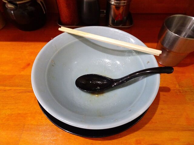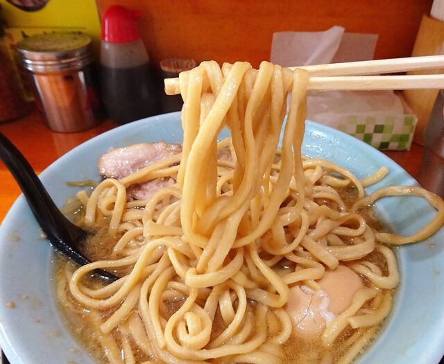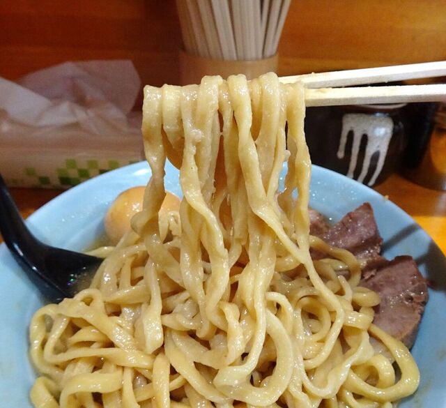 太麺を勢いよくすすると、スープが飛び散りますが、