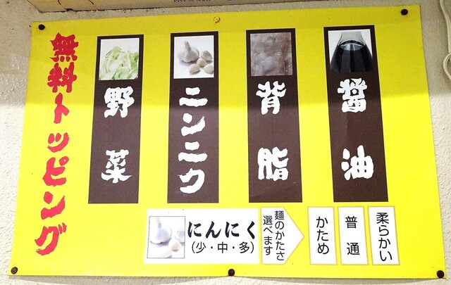 ■無料トッピングは、野菜、ニンニク、背油、醤油。