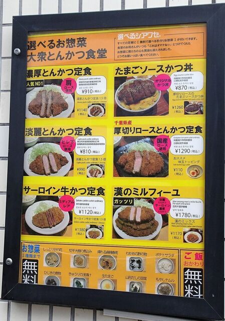 淡麗とんかつ定食810円は、惣菜3品無料と