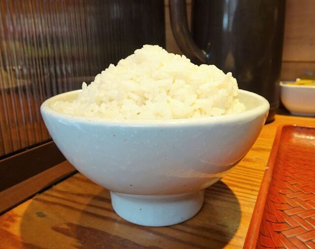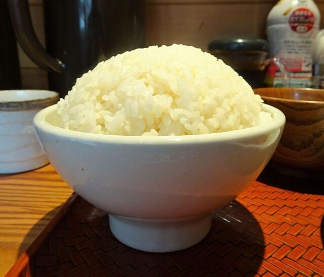 山盛りライスは、直径14センチのお茶碗に山盛り!