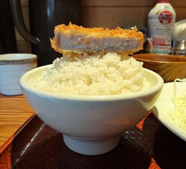 ぶ厚いロースかつは、肉がとても柔らかく、