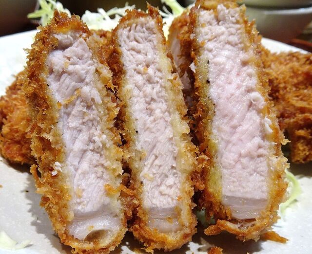 トンカツの断面を見てみると、