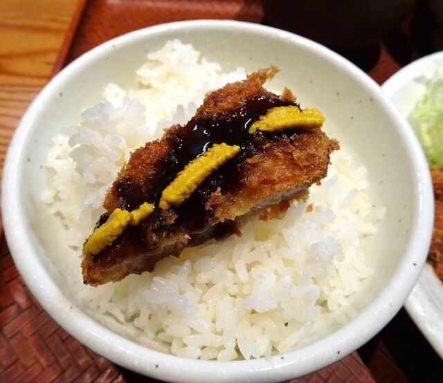 ソースとからしをつけると、ご飯が進みます!