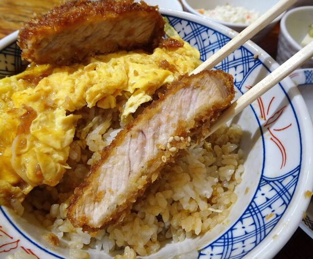 ぶ厚いソースカツをのせて、なかなかの迫力!