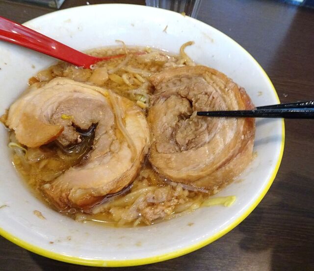 秋葉原の「ラーメンイエロー」で、デカ盛り豚増しラーメン!