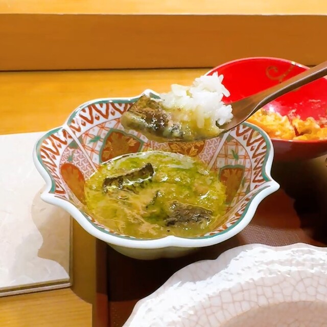 上にのったフカヒレはスッポンの出汁で煮て