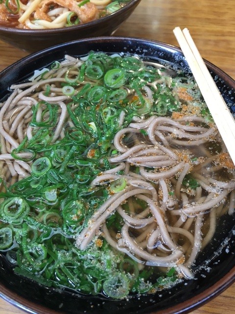 他にかけうどん、初めて見るネギラー油のお蕎麦も注文してみました。