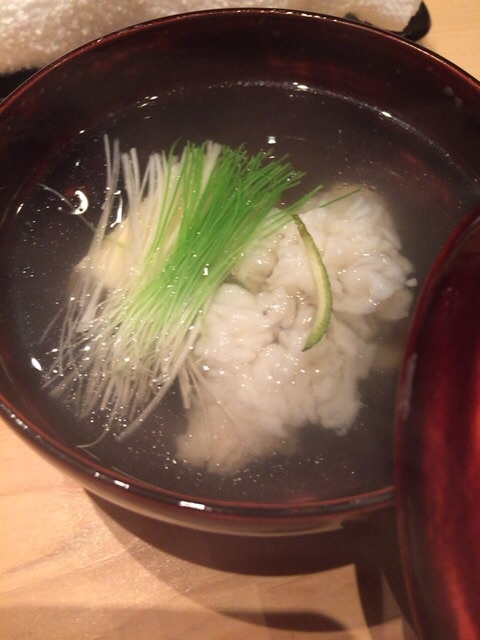 煮あわび、蛸、昆布じめ、鰻、鱧のお吸い物等。