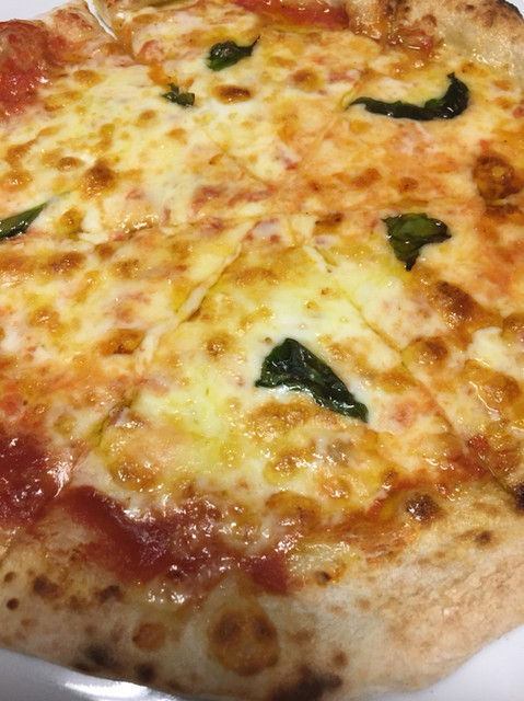 もっちりで少し薄めの生地にチーズがたーっぷり。今まで食べたピザの中で一番好きかも!