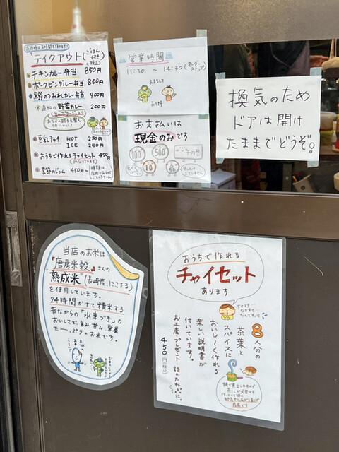 この日のメインカレーはレギュラーのチキン、ポークビンダルー、鰯のつみれカレーと本日のカレーの国産あさりカレーの4種類。カレーは定食に追加することも可能。