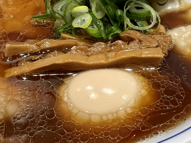 味玉は黄身の旨みの強く、味の染みもしっかり。メンマはコリッとした歯応えが残っている。