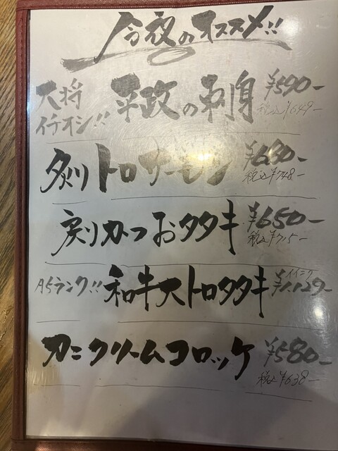 前回頼んで感動して、おかわり!の、メニュー