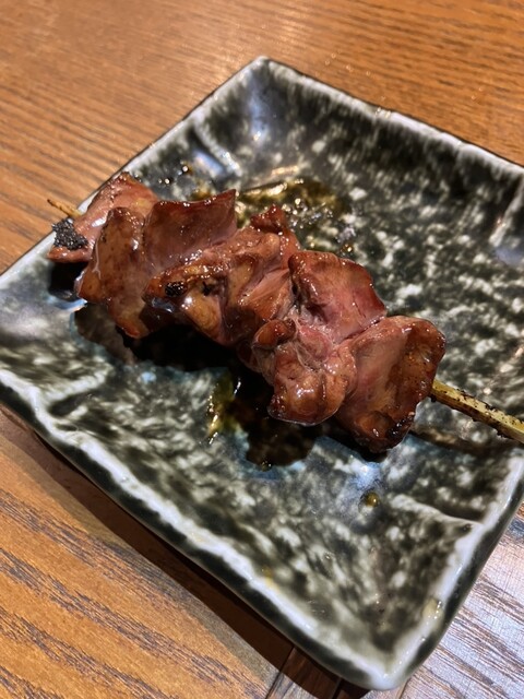 ならば!と肝も注文。半生のタレ焼きで。